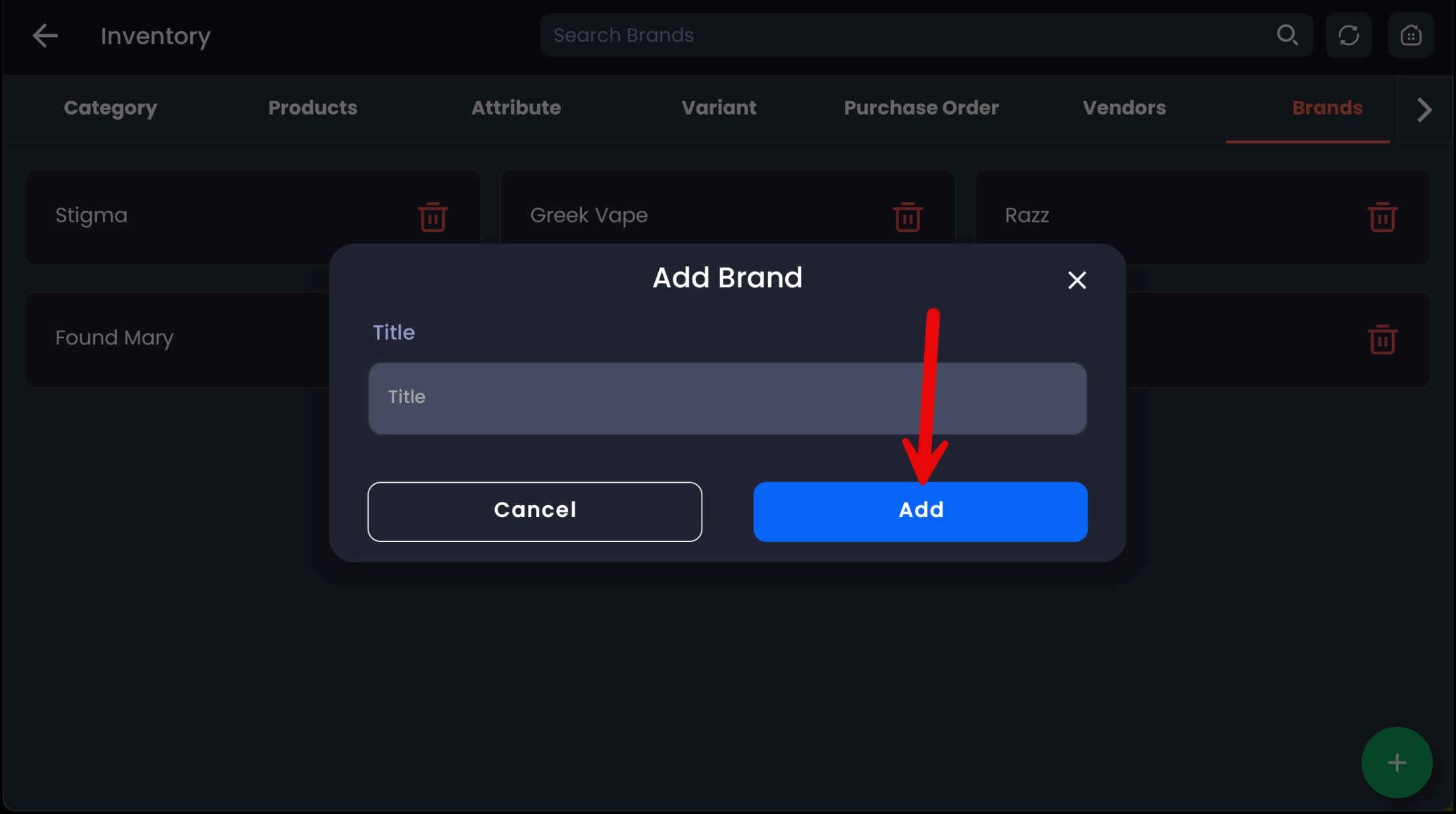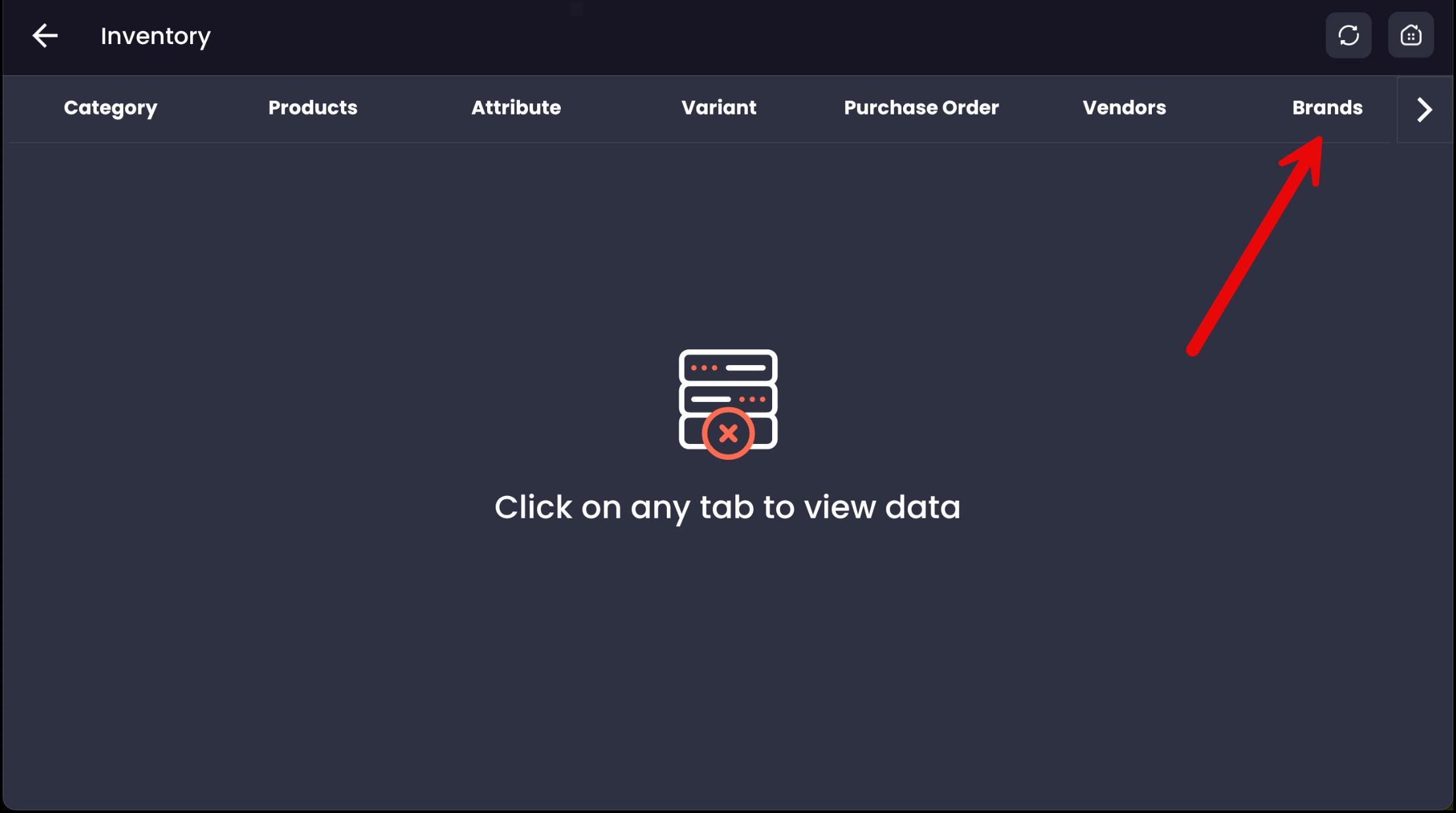 After creating a brand, tap Products from the same Inventory screen.