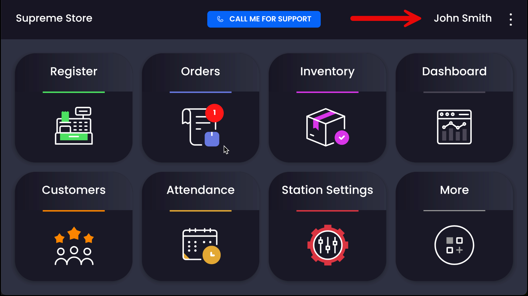 Confirm the correct employee is selected β their name will appear in the top right corner.