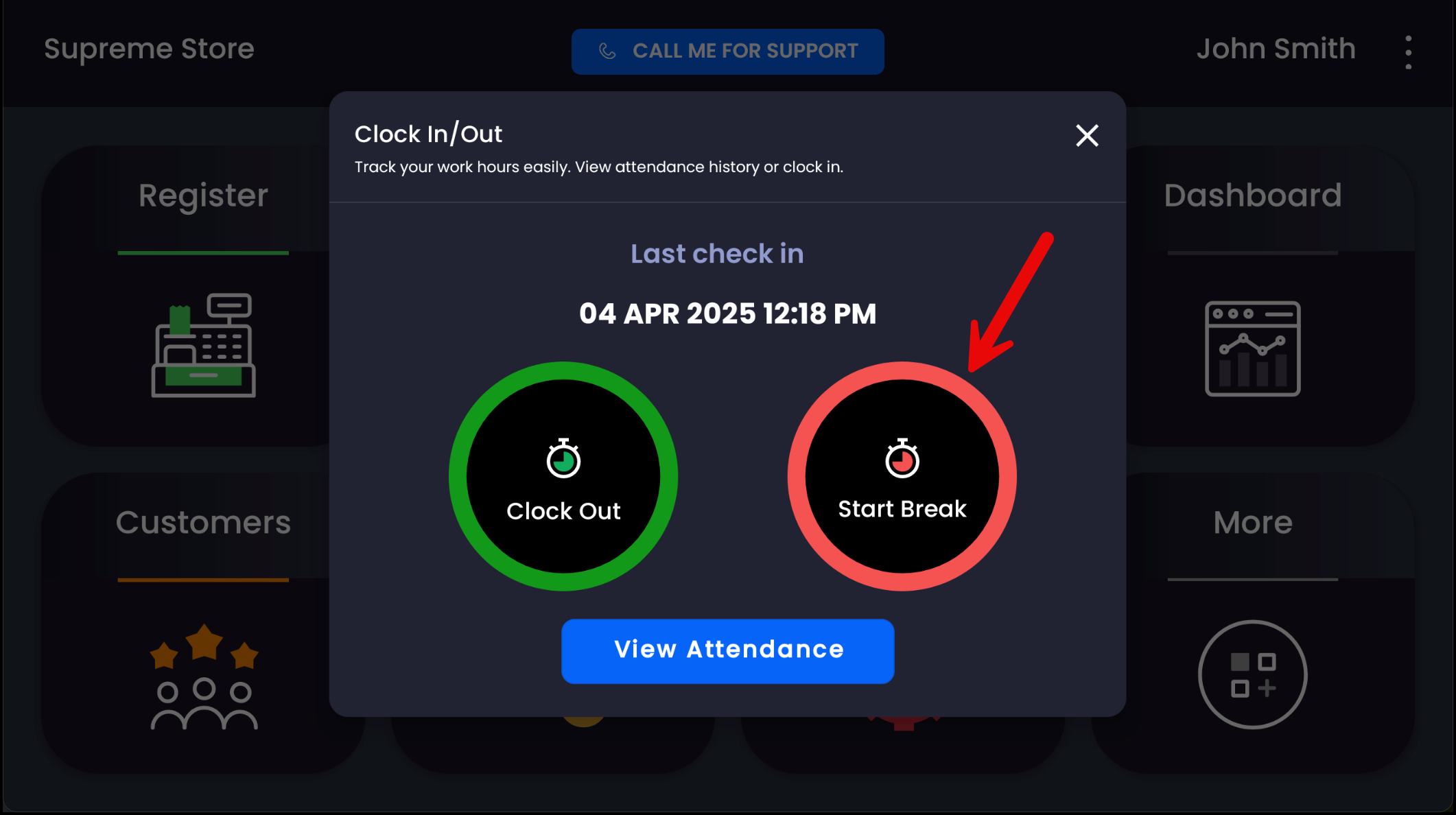 Thatβs it! The system will log your break times for reporting and compliance.