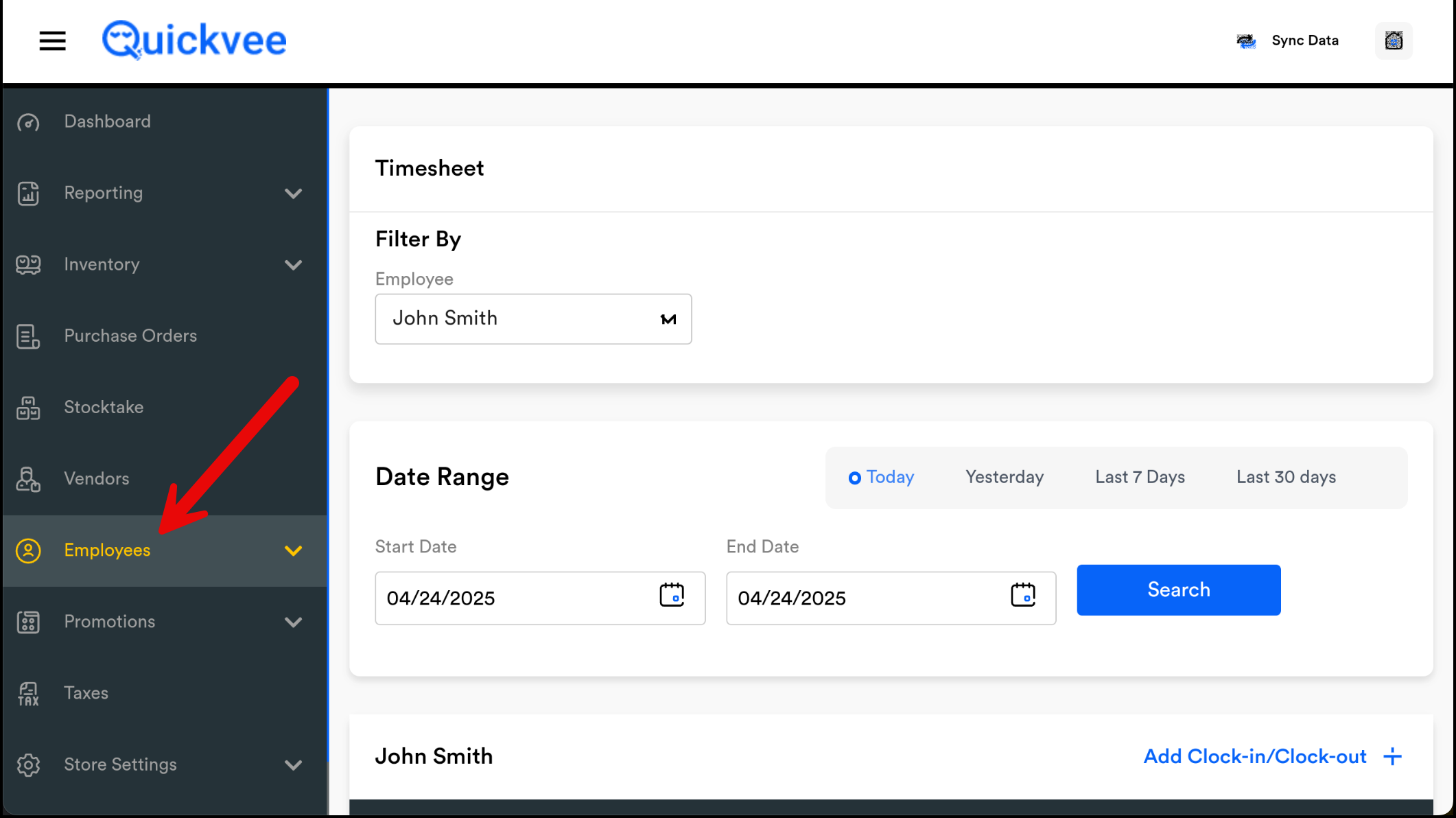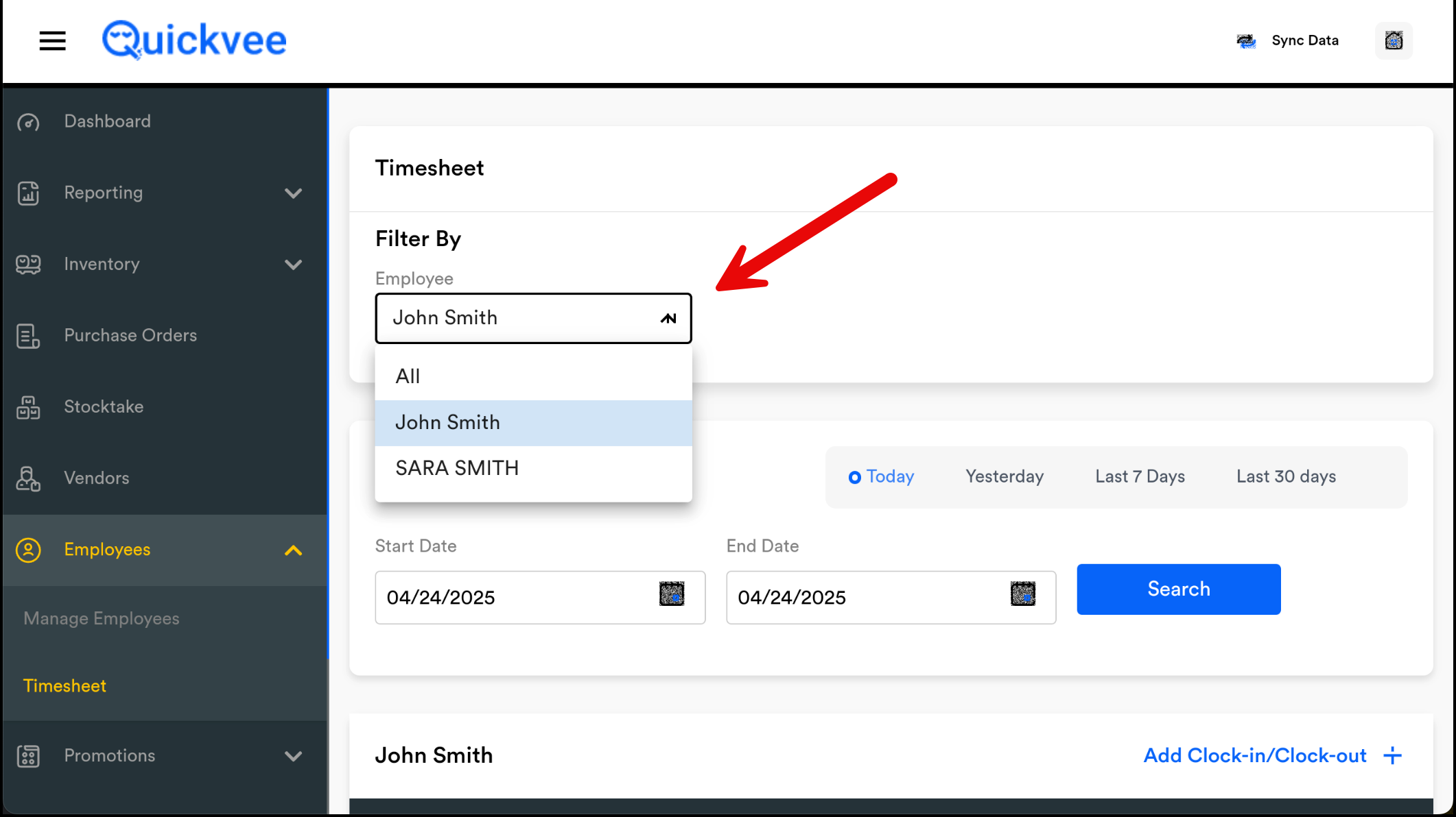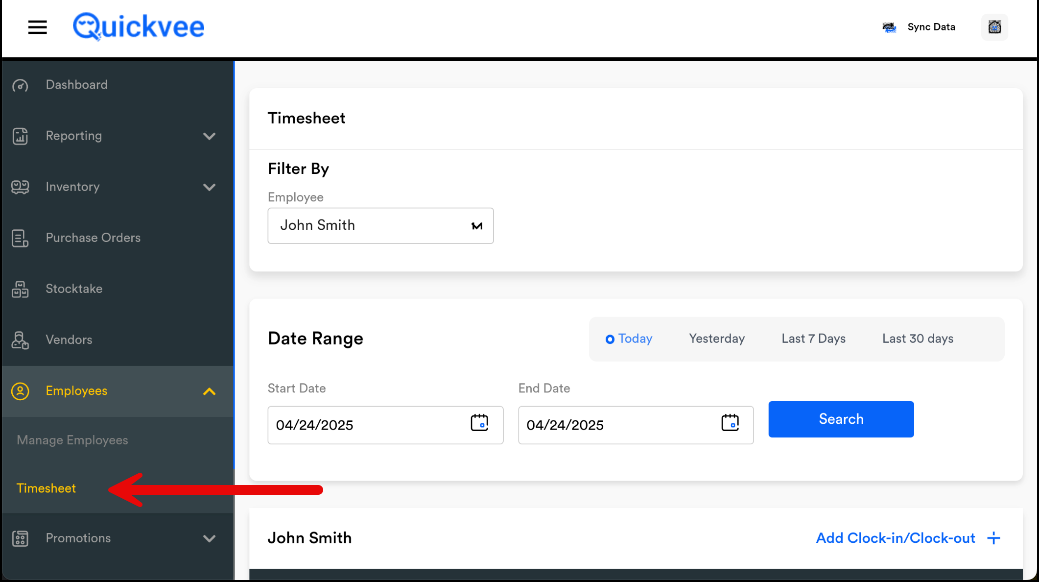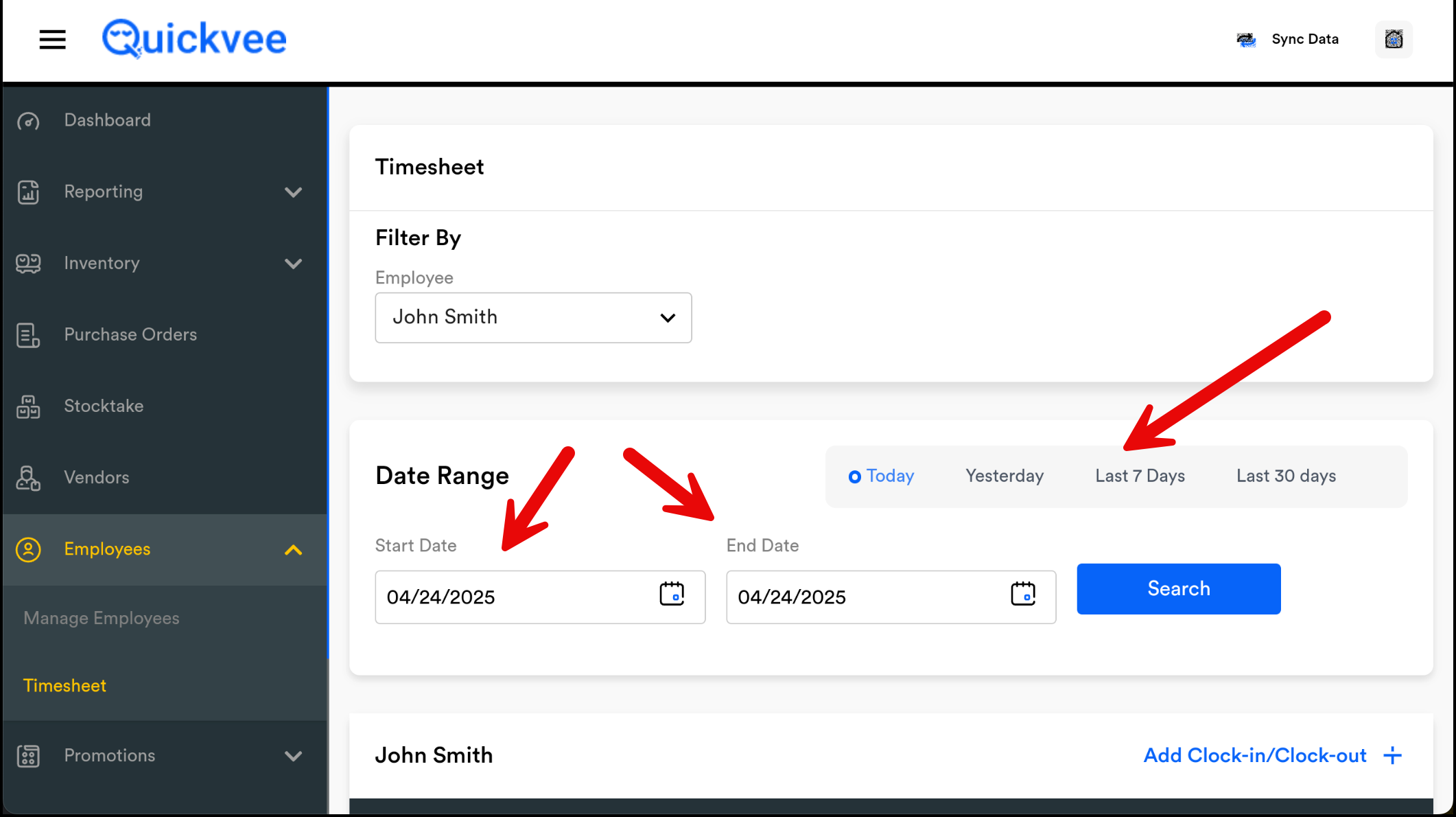Select the Clock-In Date.