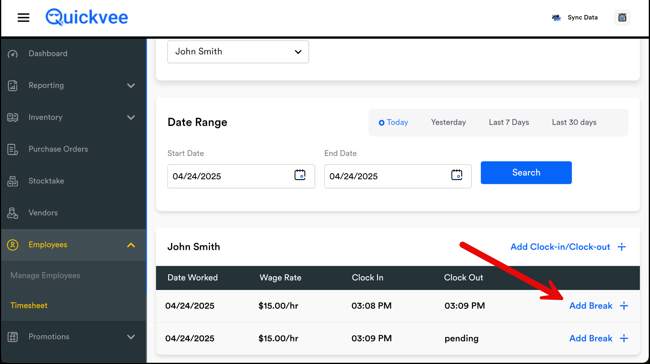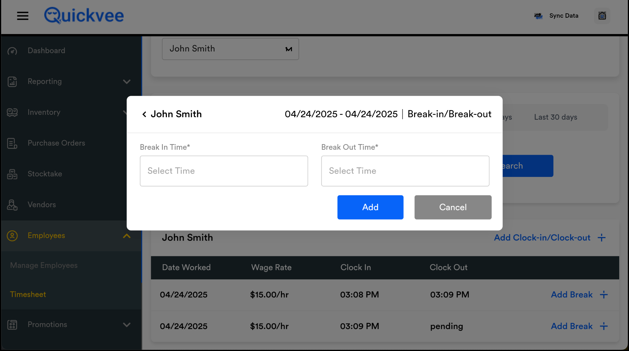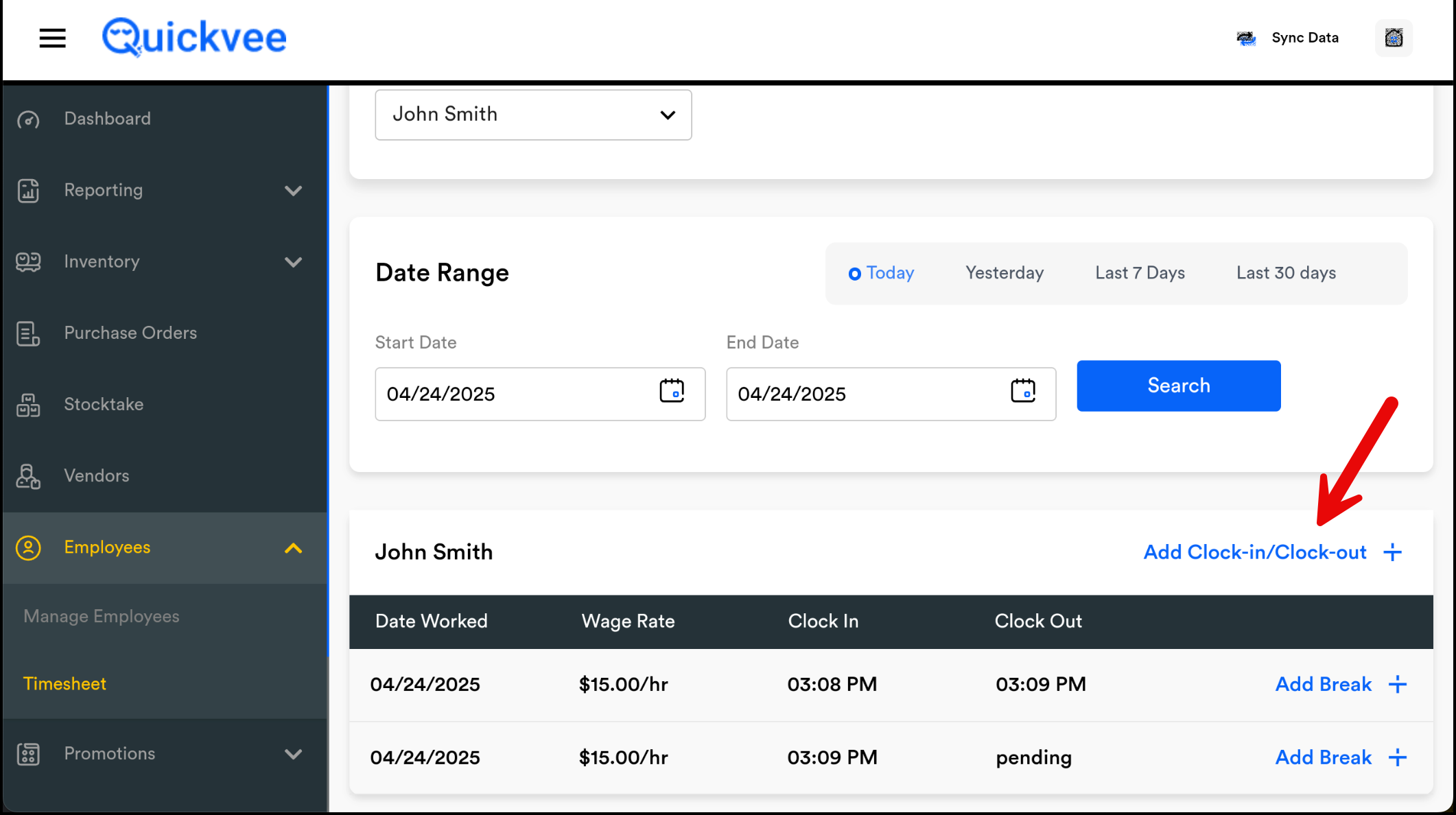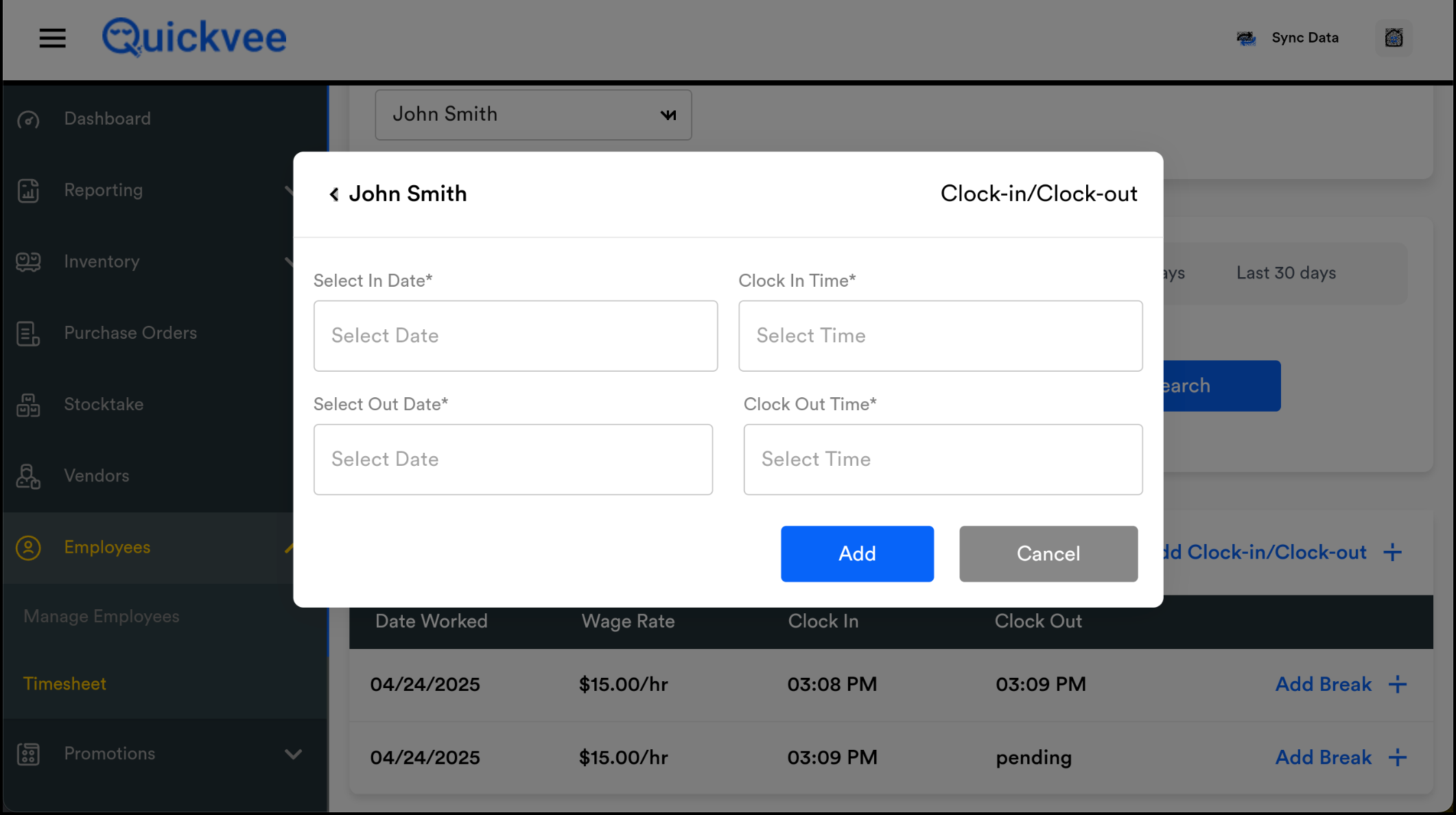 Tap Add Clock-In/Clock-Out.
