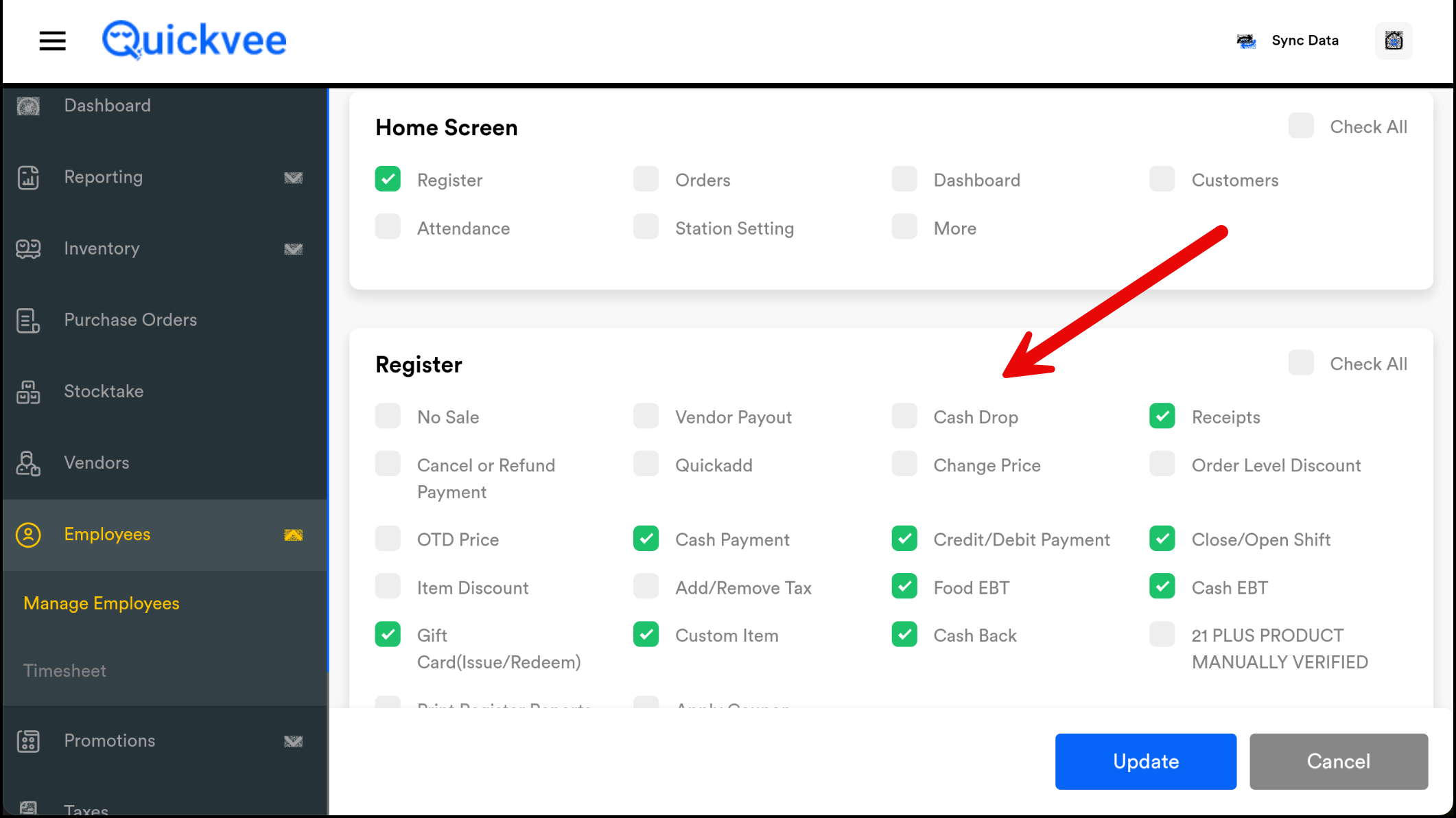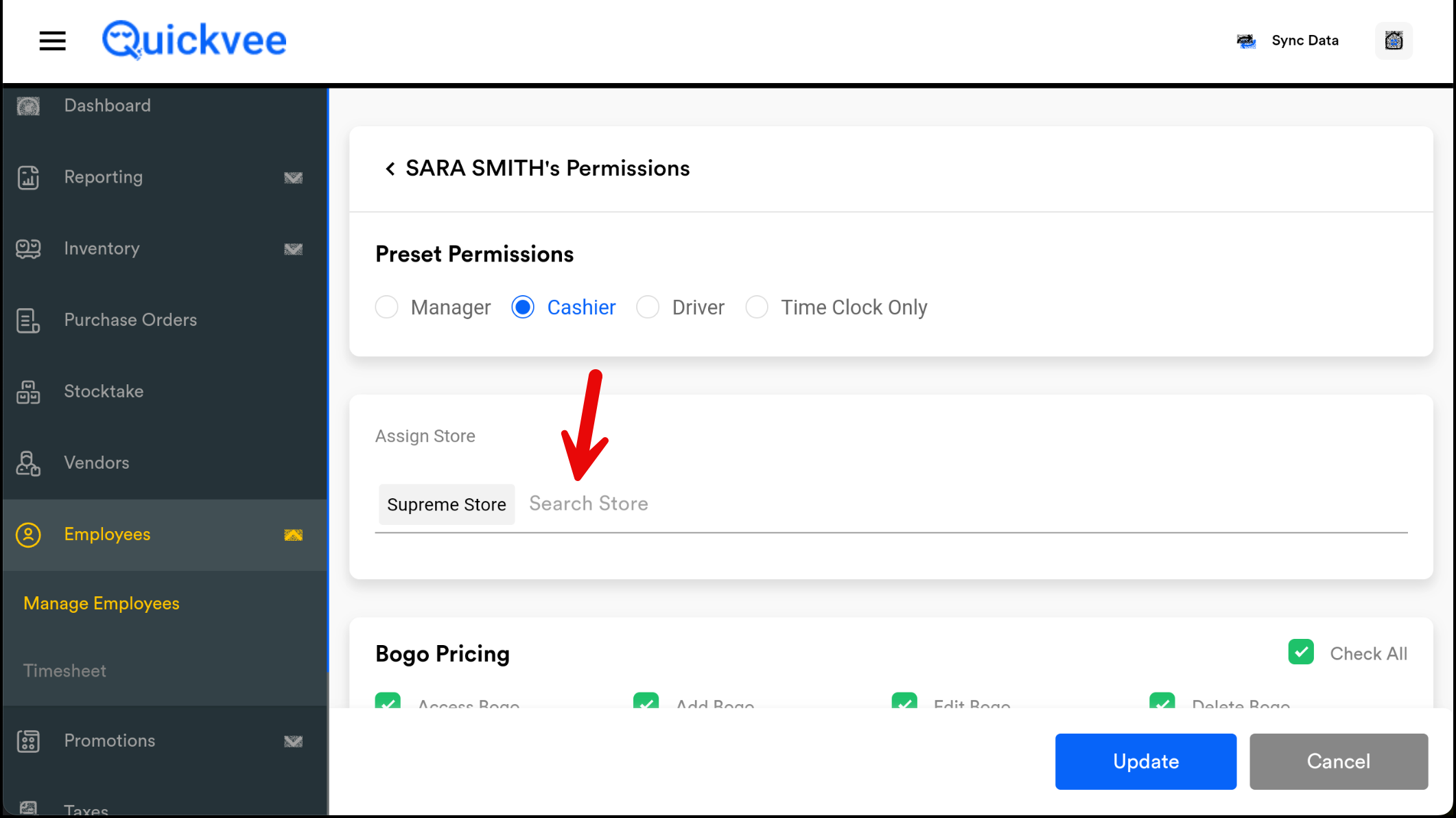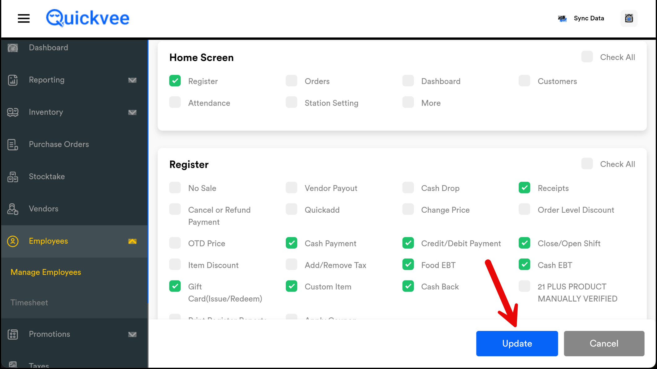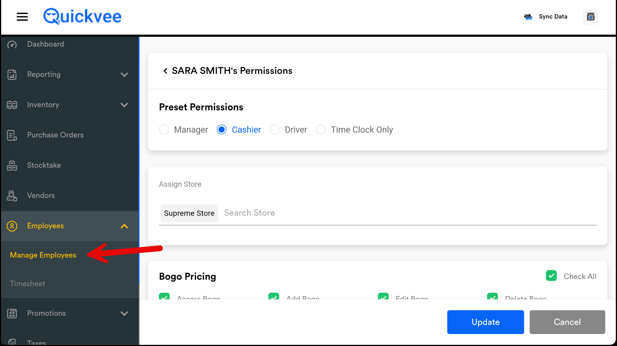 Customizing employee permissions in Quickvee allows you to control what features and functions each staff member can access. Permissions are tied to their 4-digit PIN and can be tailored individually or based on preset roles.