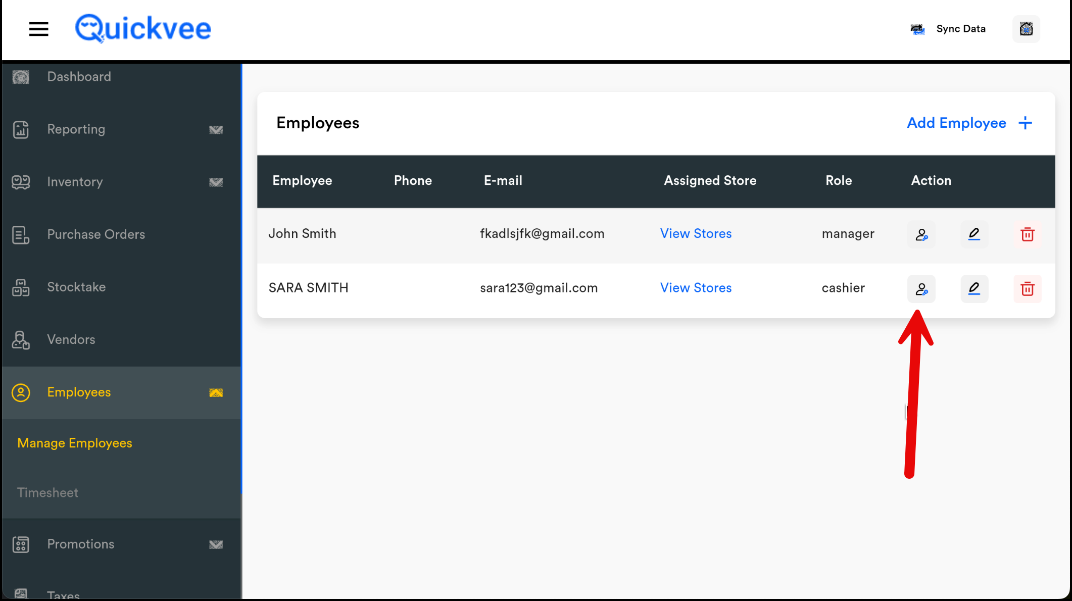 Find the employee you'd like to modify and tap the Edit icon next to their name.