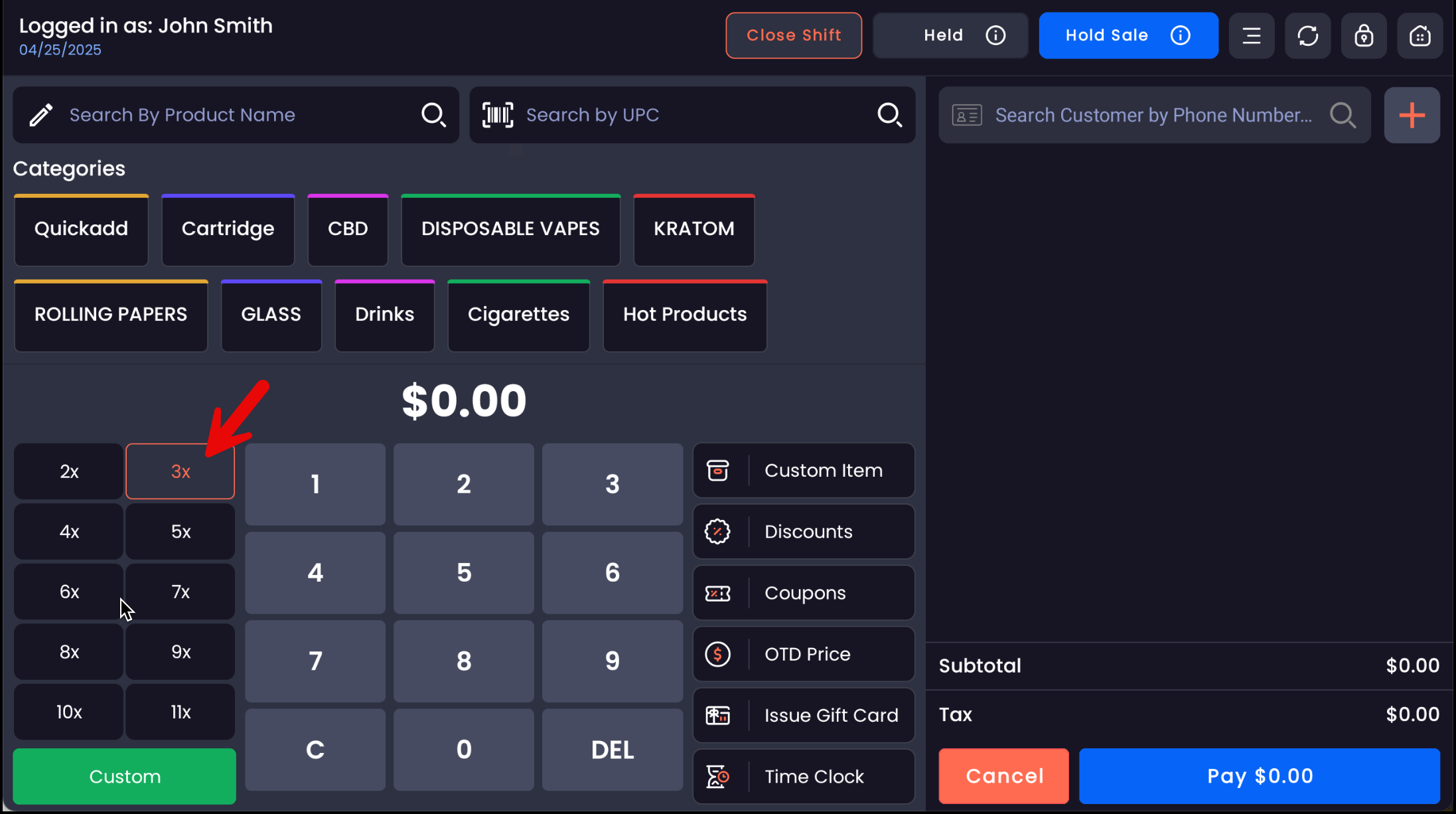 Tap the desired multiplier before adding products to the cart.